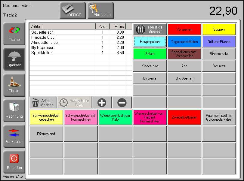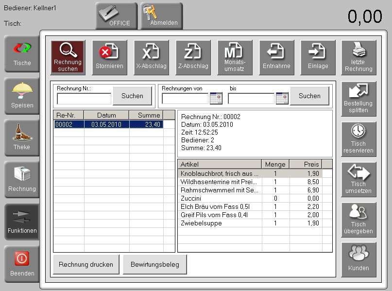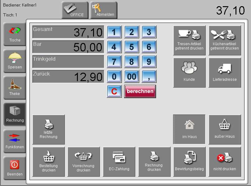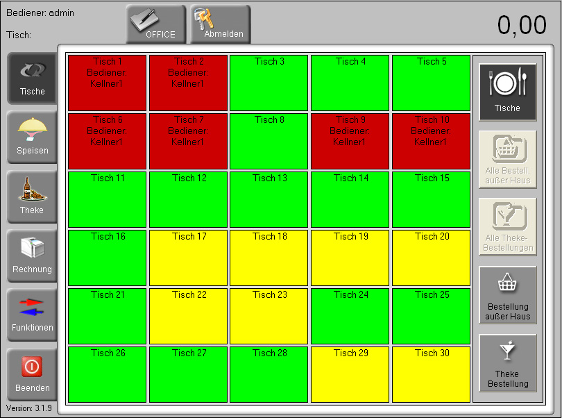 - Tischverwaltung (bis max.30 Tischen)